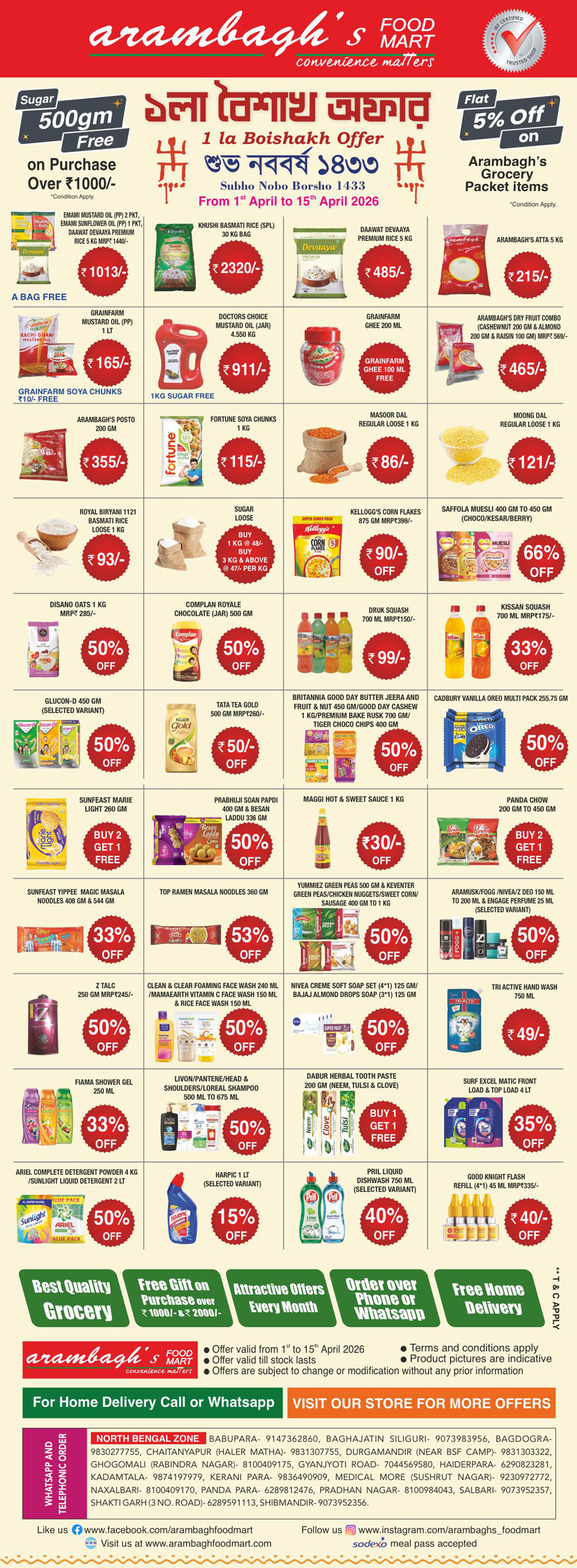 APRIL OFFER : 1ST TO 15TH APR 2026 SOUTH BENGAL
